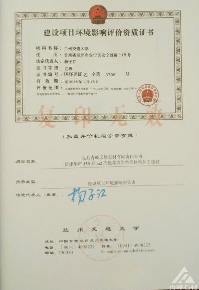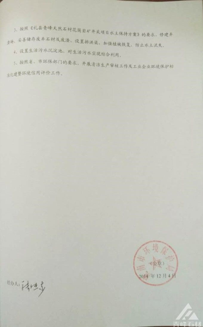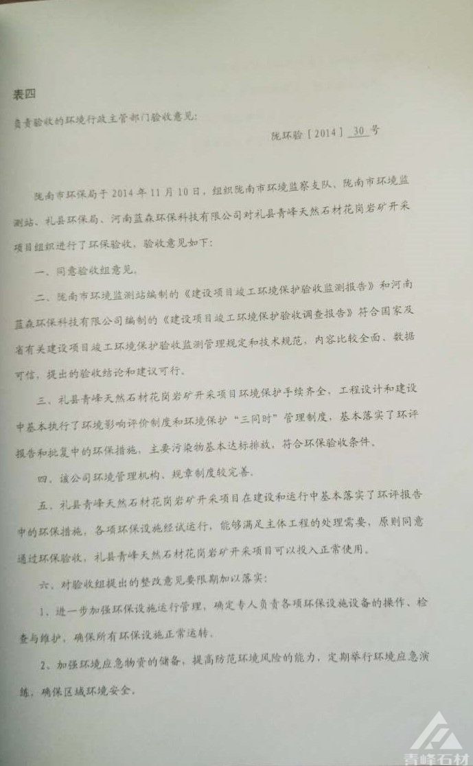 禮縣青峰天然石材有限責(zé)任公司項(xiàng)目