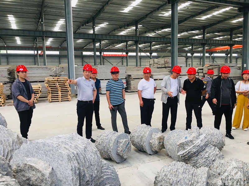 在高大寬敞的生產車間,各位企業(yè)家參觀了公司各種規(guī)格“皇室金鉆”、“富貴金麻”品牌花崗巖板材、石球、條石、道牙石等系列石材產品。觀看了大切、小切、自動磨光、火燒各種現代化石材生產設備,從荒料切割到板材磨光、切割、火燒和石球加工等生產工藝流程,化巖石為神奇,成就出精良的裝飾裝修產品,裝典人居華景的美好生活,大家無不為之感嘆稱贊。