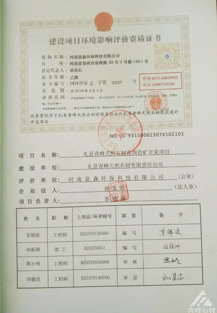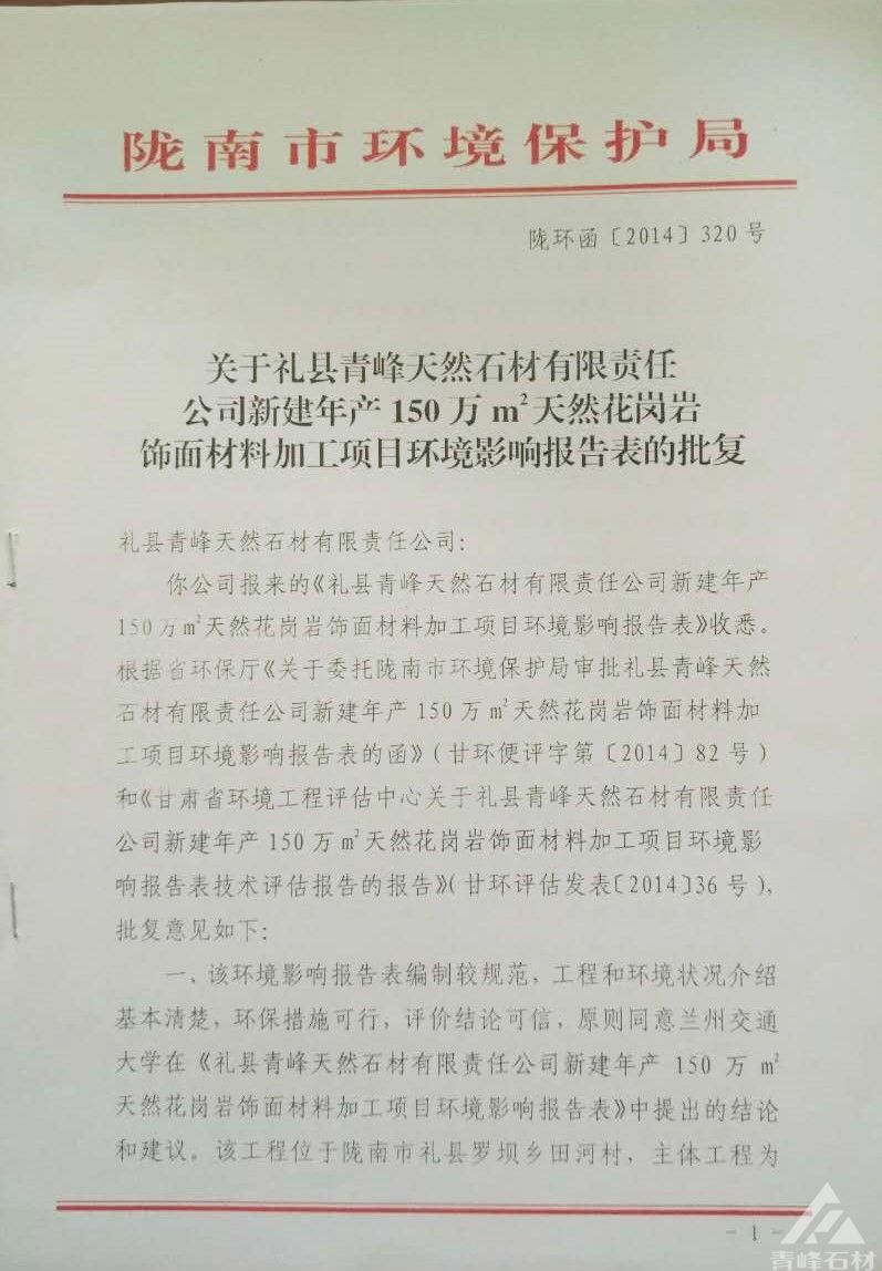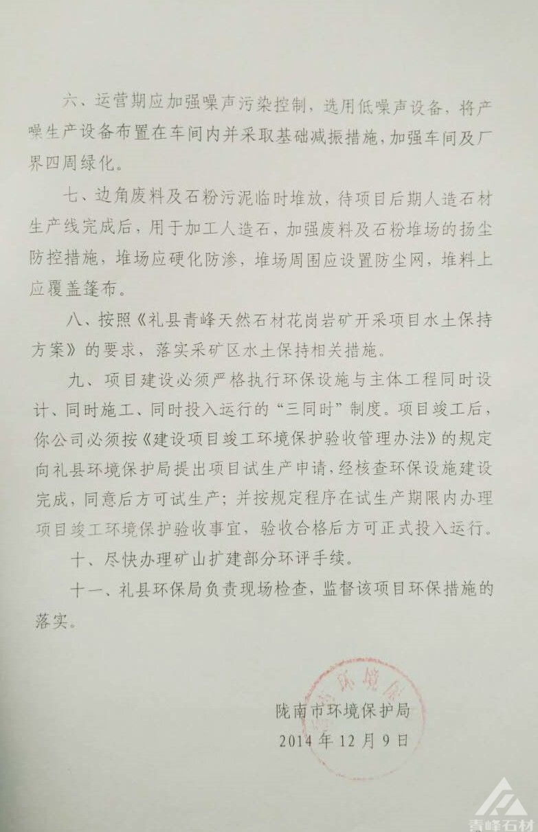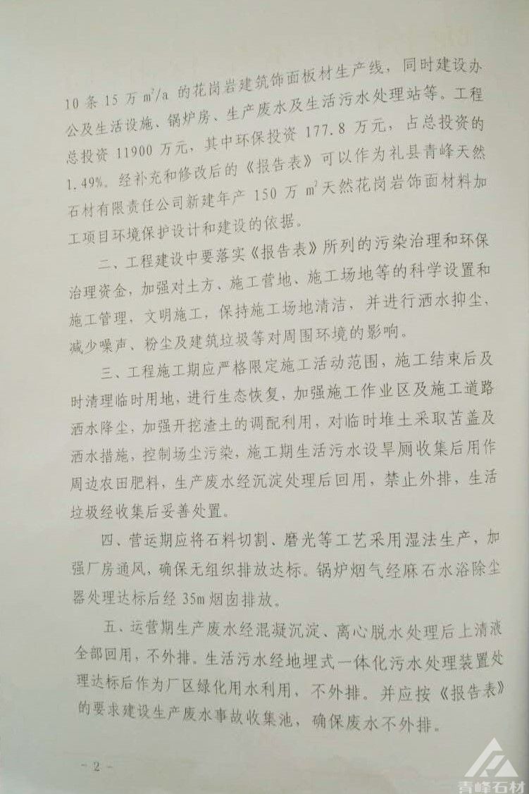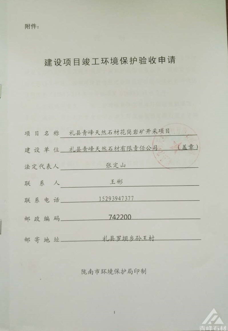 禮縣青峰天然石材有限責(zé)任公司項(xiàng)目
